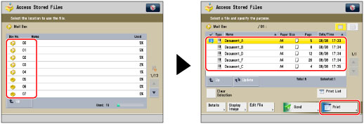 As an example, the procedure for selecting files stored in a mail box is explained in this section.