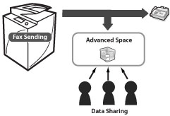 Fax documents can be sent not only to the destination fax number, but also to the Advanced Space for future reference.