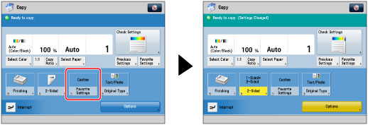If you register [2-Sided] + [2 on 1] in Favorite Settings, the screen is displayed as shown below.