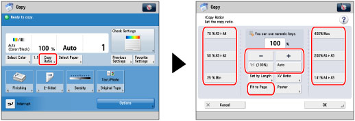 If you set [Auto], you have to select a paper size manually. If you do not select a paper size, the copy ratio is automatically set to match the size of paper loaded in paper drawer 1.