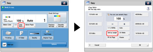 You can enter the width or length of the original size. If you enter the width for the original size, make sure to enter the width for the copy size, and vice versa.