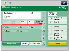 To use the one-touch buttons of a server machine, it is necessary to configure the server machine settings. Set to open the Remote Address Book externally on the server machine. (See "Making the Remote Address Book Open.")
