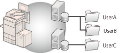 The procedure below describes how to register the folder path for the personal folder and authentication information for each user.
