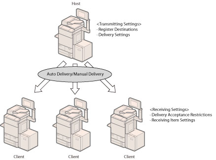 If [Restrict Receiving Device Information] for <Receiving Settings> is set to 'Off', the machine can receive device information delivered from different machine models. (See "Setting the Receiving Machine.") However, some information may not be delivered correctly.