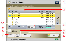 For instructions on arranging folders, checking detailed information for the file, and editing/deleting files, see "Access Stored Files."