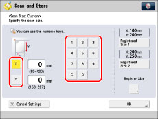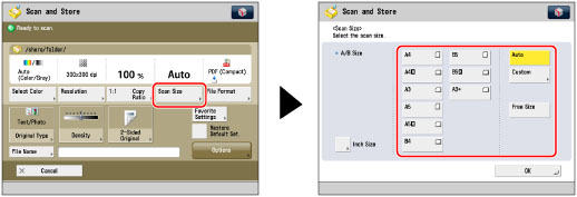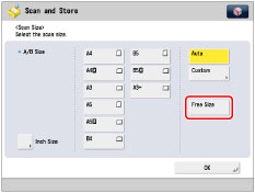 You can manually specify a scan size when scanning originals that cannot be detected using [Auto]. You can also register the specified scan size.