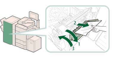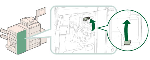 1. Gently push the saddle stitcher unit (F-C5) back into the machine.Always make sure to push the saddle stitcher unit in as far as it can go.