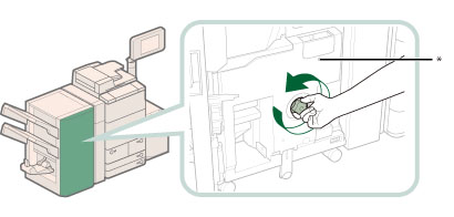 1. Turn the lower dial (F-C3) in the direction of the arrow (counterclockwise).Jammed paper is fed to the guide (F-C2).