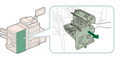 When returning the saddle stitcher unit to its original position or closing the cover, be careful not to get your fingers caught, as this may result in personal injury.