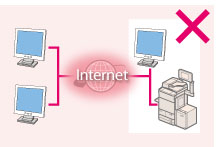 If a global IP address is assigned to a printer/multifunction machine, you can create a network environment to reduce the risk of unauthorized access by installing security software, such as a firewall that prevents access from the external networks. If you want to assign a global IP address to and use a printer/multifunction machine, contact your network administrator.