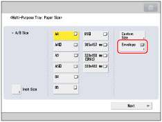 Set the envelope size to the same size as the envelopes loaded in the multi-purpose tray.