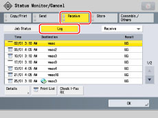 If the fax board is installed or the Remote Fax Kit is activated, a list of fax and ECM transmission logs is printed.