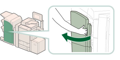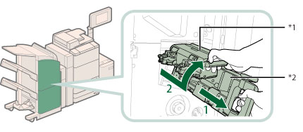 When returning the saddle stitcher unit to its original position, be careful not to get your fingers caught, as this may result in personal injury.