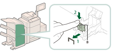 When you have cleared the staple jam, be sure to manually reposition the staples in the saddle stitcher unit. (See "Saddle Stitch Staple Repositioning.")