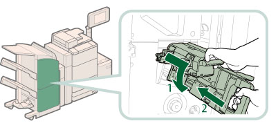 2. Grip the handle of the saddle stitcher unit, and return it to its original position. |