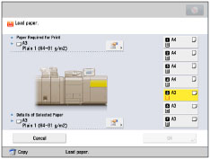 If a message prompting you to load paper appears during printing, the remaining prints are automatically made after you load the correct paper. If you select a different paper source, the remaining prints are made after you press [OK].