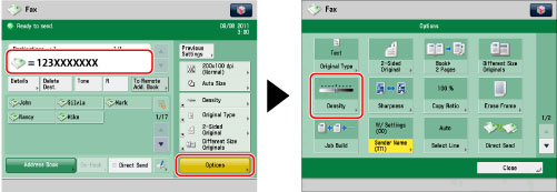 You can adjust the density level to match the darkness of your original before sending a fax. You can also adjust the background density for originals such as coloured paper.