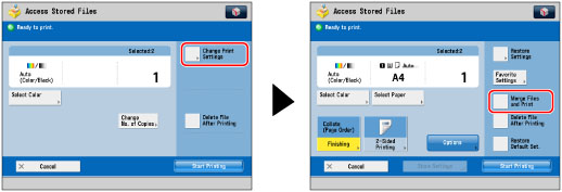 Press [Change Print Settings] → [Merge Files and Print].