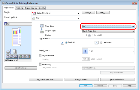 For instructions on how to display the printer driver screen, see "Printing" or "Configuring the Default Print Settings."
