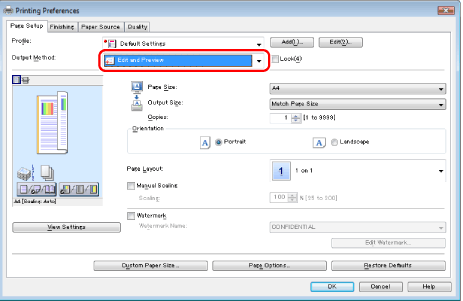 Select [Edit and Preview] from [Output Method].