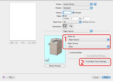 When you want to print on a specific type of paper, specify the paper source containing the paper, or the paper type.