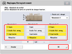 Il est possible d'indiquer un réceptacle de sortie pour plusieurs fonctions.