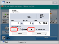 Si la densité est modifiée dans [Options], la modification de la densité pendant la copie risque de n'avoir aucun effet sur la sortie.