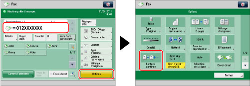 Le nombre maximal de pages pouvant être envoyées en une seule fois est de 999. En mode [Lecture continue], un message demandant si la tâche doit être envoyée s'affiche après la lecture des 999 premières pages. Si l'on décide d'envoyer la tâche, les 999 pages lues sont envoyées. Si la tâche est annulée, les pages lues ne sont pas envoyées.