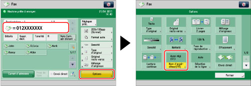Spécifier le destinataire → appuyer sur [Options] → [Nom d'expéditeur(ITE)].