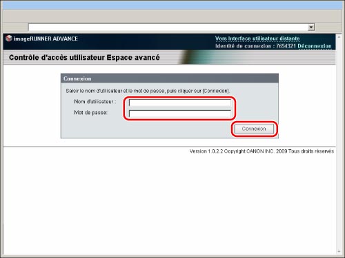 Il est également possible de se connecter en saisissant l'URL de la page [Contrôle d'accès utilisateur Espace avancé] dans la barre d'adresse, comme indiqué ci-dessous (sensible à la casse).