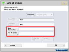Lors de l'utilisation des informations d'authentification pour la connexion à la machine et l'accès au serveur de fichiers