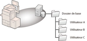 Si le dossier de base est défini sur le serveur WebDAV, les dossiers pour tous les utilisateurs doivent être préparés en avance.