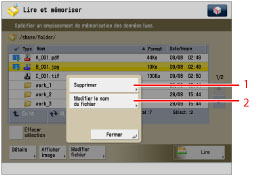 Pour supprimer le fichier sélectionné ou modifier le nom de fichier.