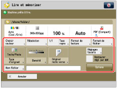 Il est possible de mémoriser jusqu'à 999 pages. Si les originaux lus via le chargeur sont des originaux recto verso, il est possible de mémoriser jusqu'à 1 000 pages. Une fois le nombre maximum d'originaux atteint, un message s'affiche demandant si les autres pages doivent être mémorisées.