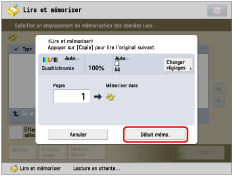 Il est possible de mémoriser jusqu'à 999 pages. Si les originaux lus via le chargeur sont des originaux recto verso, il est possible de mémoriser jusqu'à 1 000 pages. Une fois le nombre maximum d'originaux atteint, un message s'affiche demandant si les autres pages doivent être mémorisées.