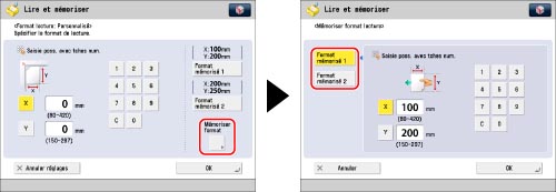 Il est possible de spécifier manuellement un format de lecture lors de la lecture d'originaux ne pouvant pas être détectés à l'aide de [Auto]. On peut également mémoriser le format spécifié.
