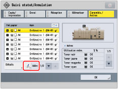 Le tableau ci-dessous indique les quantités de consommables restantes.