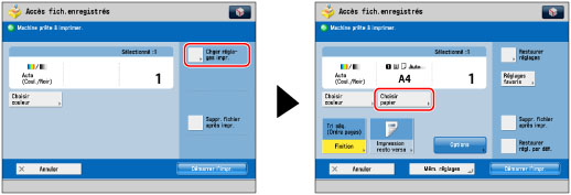Si plusieurs tâches réservées sont en attente, seul le format/type de papier spécifié pour la tâche d'impression réservée en dernier lieu s'affiche dans l'écran de sélection du papier.