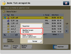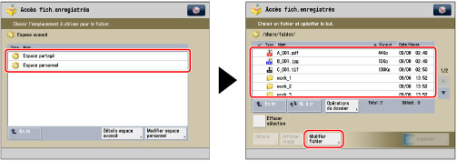 Sélectionner l'espace de stockage souhaité → sélectionner le niveau de dossier souhaité → appuyer sur [Modifier fichier].