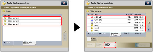 Sélectionner l'espace mémoire souhaité → sélectionner le répertoire où le fichier sera mémorisé → appuyer sur [Modifier fichier].