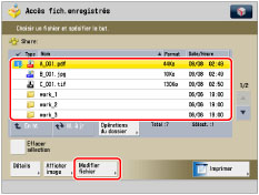 Sélectionner le fichier souhaité → appuyer sur [Modifier fichier].