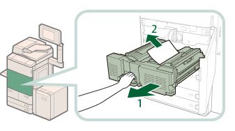 1. Tenir le levier vert et sortir l'unité de transport de fixation.