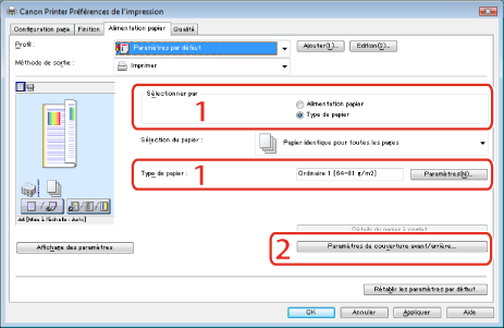 Pour imprimer sur un type de papier spécifique, indiquer la source contenant le papier approprié ou le type de papier.