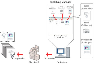 Publishing Manager permet de créer des documents de façon efficace, en tirant pleinement parti des fonctions d'une machine Canon.