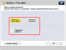 Informazioni blocco scansione (codice TL)
