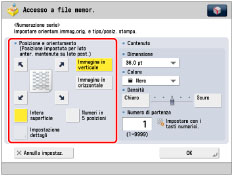 Il modo Numerazione serie non può essere utilizzato con i file che contengono immagini con una risoluzione inferiore a 600 x 600 dpi.