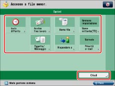 Per ulteriori informazioni sui modi delle opzioni, vedere "Scansione e invio" or "Invio/ricezione di un fax".