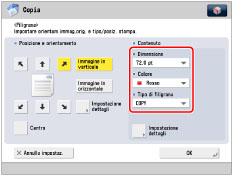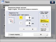 Se si imposta per due tra i modi [Numerazione pagine], [Numerazione serie] o [Stampa data] la stampa alla stessa posizione, viene visualizzato un messaggio che chiede conferma quando si preme