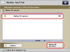 Utilizzare questo tasto per attivare o disattivare il modo Blocco in memoria I-fax per la Mailbox RX memoria.