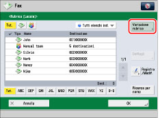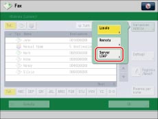 [Variazione rubrica] viene visualizzato quando sono registrati sia la rubrica remota che il server LDAP. Se sulla macchina è registrato solo il server LDAP, viene visualizzata l'opzione [A server LDAP].